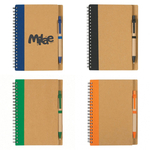 Stay organized with this eco-friendly 5" x 7" spiral notebook featuring 80 lined pages and a matching paper barrel pen secured in a convenient elastic pen loop. Designed with a durable cardboard cover and sturdy spiral binding, this notebook is perfect for meetings, note-taking, school, and everyday use. The included pen keeps everything in one place, making it an ideal grab-and-go writing set. Great for trade shows, corporate giveaways, offices, and educational events, this practical and budget-friendly notebook keeps your brand visible with every use. 5" W x 7" H